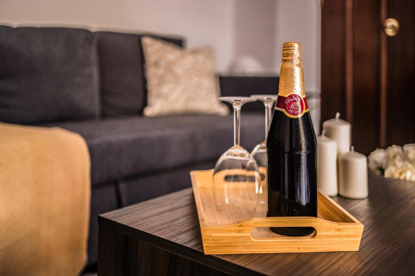 One-Bedroom Apartment. This spacious apartment comprises 1 living room, 1 separate bedroom and 1 bathroom with a shower and a hairdryer. Meals can be prepared in the well-fitted kitchen, which comes with a stovetop, a toaster and an electric kettle. This apartment features air conditioning, a washing machine, flat-screen TV, as well as winechampagne for guests. The unit offers 2 beds.